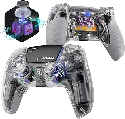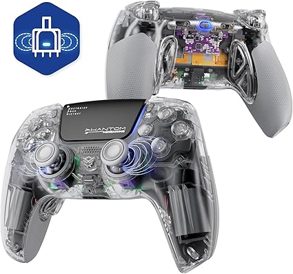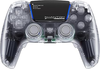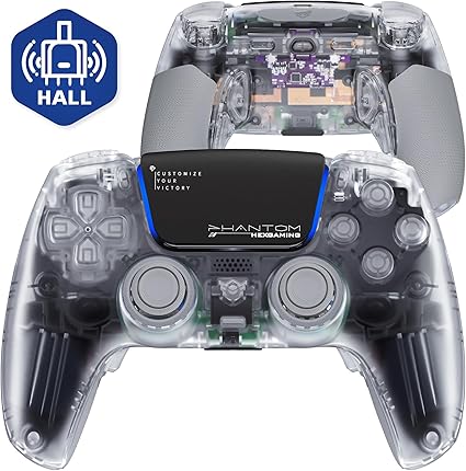 HEXGAMING ホールエフェクト ps5やPCや携帯など対応用PHANTOM Proゲーミングコントローラー、グリップ付き、割り当て可能な背面ボタンが4つ付いて、プロファイルが6種類登録できて、交換可能なアナログスティック8種類から選べ、調整できるアダプティブトリガー機能付属、有線および無線のコントローラー操作をサポートでき【スケルトン】 a