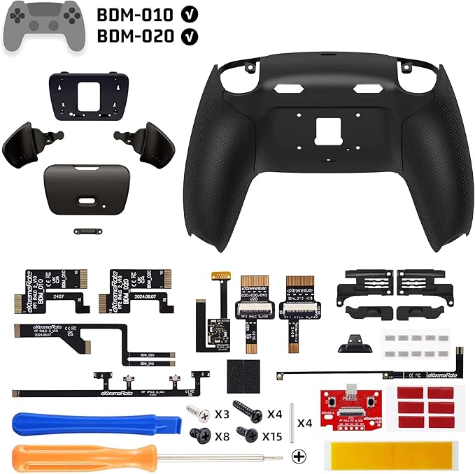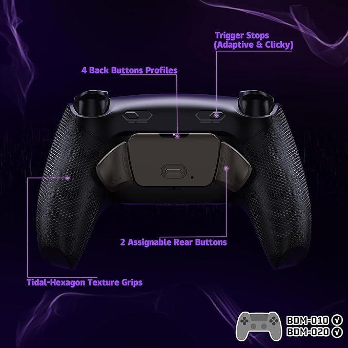 コントローラーを改造しよう: eXtremeRate RISE Plus Max RMB(リアルメタル背面ボタン)バージョンリマップキットでプロのようにプレイしましょう。BDM-010およびBDM-020にのみ対応しています(購入前に、YouTubeで「eXtremeRate Check BDM for ps5 controller」または「fiE4BWSIBRI」を検索してBDMモデルの確認方法をご覧ください)。RISE Plus Maxリマップキットは、お手持ちのコントローラーにプロeスポー