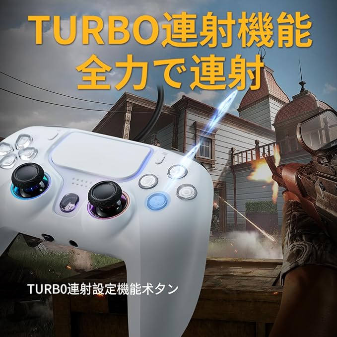 NBCP PS5 コントローラー【PS5 Pro/Slim/New PS5 対応/PS4】有線ゲームパッド|遅延なし|DualSense互換|TURBO機能|PC/Steam対応|ジャイロセンサー・デュアル振動・高耐久ボタン・ヘッドホンジャック搭載(ホワイト) a