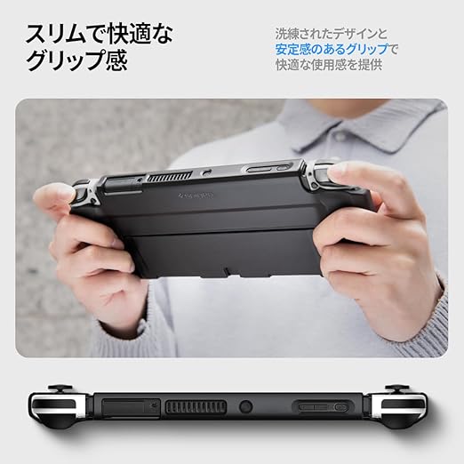 Spigen Switch 有機el カバー ドック対応 スタンド保護 薄型 着脱簡単 耐衝撃 衝撃吸収 滑り止め 傷防止 全面保護 任天堂 ニンテンドー スイッチ OLED ケース シン・フィット ACS04239 (ブラック) a