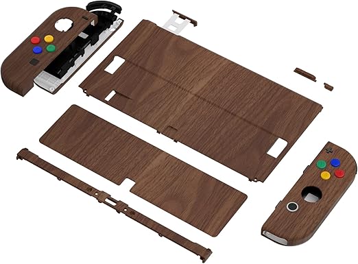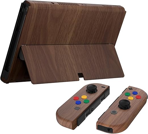 本体ではない-eXtremeRate switch oledに対応用パターン柄バックプレート&金属スイッチ 背面スタンド、switch 有機elに対応用スイッチ ジョイコンハンドヘルドコントローラーハウジング、キックススタンドとフルセットボタンが付き【木目調デザイン】 a