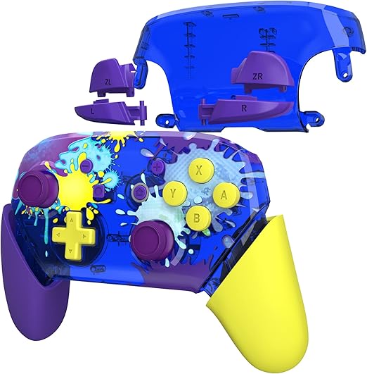 スイッチ プロコン本体ではなく、eXtremeRateフェースプレートバックプレートハンドルswitch プロコンに対応用、パターン柄プロコン switchに対応用DIY交換用グリップハウジングケースカバー【スプラッターペイント】 a