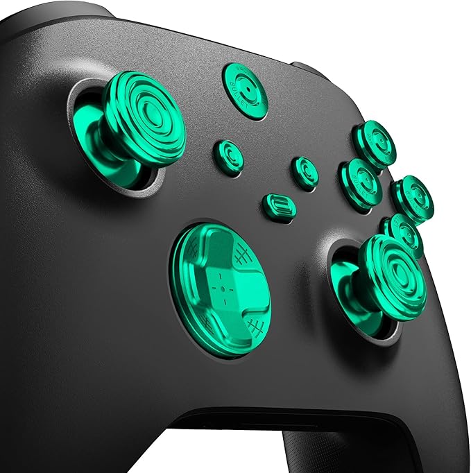 eXtremeRate Xbox Coreワイヤレスコントローラー対応用メタルボタン、Xbox Series X&Sコントローラー対応11 in 1カスタムアルミ合金サムスティック方向キーABXYボタンスタートバックシェアホームキー交換パーツ【グリーン】 a