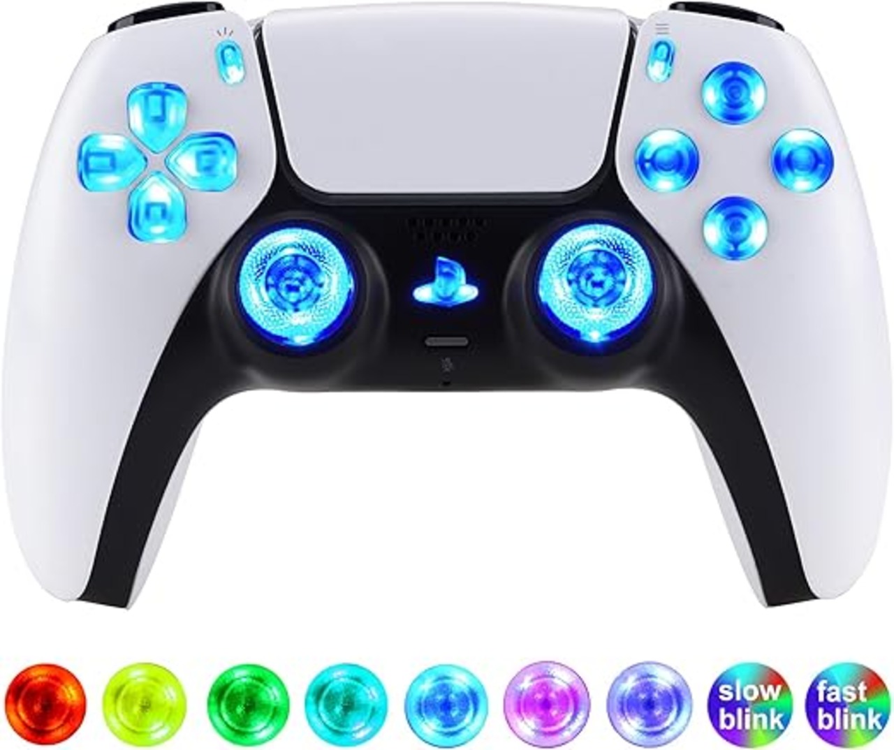 コントローラー本体ではなく、eXtremeRate ps5コントローラー(BDM-030&BDM-040&BDM-050)に対応用クリア素材の多色発光十字キー&サムスティック&シェアオプション&ホームフェイスボタン、DTF V3 LEDキット【クリア】 a