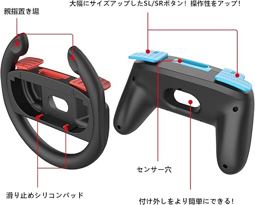 Switch2用レースゲームで抜群の臨場感が楽しめるJoy-Con用ハンドルグリップです。ジョイコンをこのグリップに装着するだけで、ゲームをよりリアルにプレイ可能!