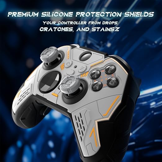 メカデザインで優れたグリップ感:Xbox Elite 2対応保護カバーは立体的なメカニカルパターンを施したデザインで、滑りにくくしっかりと握れる仕様。特に長時間のプレイや手汗が気になる方に最適です。
