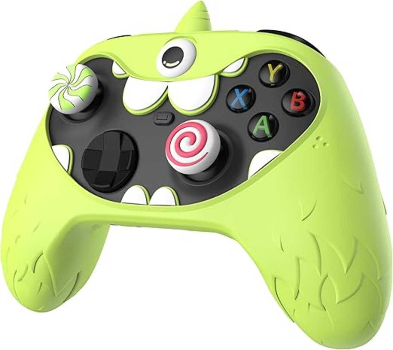 PlayVital Xbox Series X/S コントローラー対応用モノアイモンスター可愛いシリコンカバー、Xbox Coreコントローラー対応用グリップカバー、滑り止め、全面保護、ジョイスティックキャップやステッカー付き 【グリーン】 a
