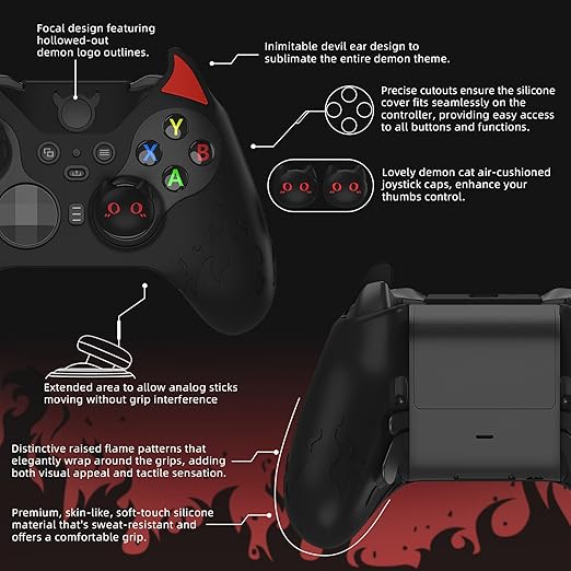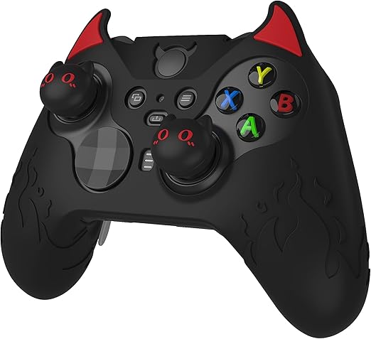 PlayVital Cute Demon Xbox Elite WirelessコントローラーSeries 2対応用シリコンカバー、Xbox Elite Series 2 Core対応用可愛い悪魔風シリコンカバー、サムグリップキャップ付属【ブラック】 a