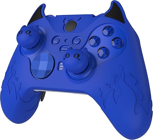 PlayVital Cute Demon Xbox Elite WirelessコントローラーSeries 2対応用シリコンカバー、Xbox Elite Series 2 Core対応用可愛い悪魔風シリコンカバー、サムグリップキャップ付属【ブルー】 a