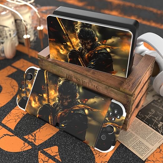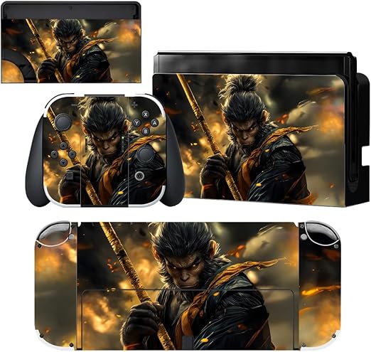 PlayVital 有機elモデルに対応用フルセット保護ステッカー、Switch OLEDコンソール&ジョイコン&ドック&グリップに対応用カスタムビニールステッカースキンシール【Wasteland Wukong】 a