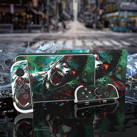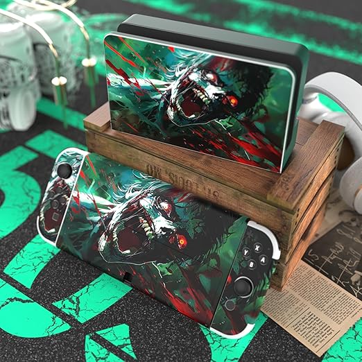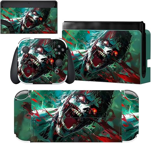 PlayVital 有機elモデルに対応用フルセット保護ステッカー、Switch OLEDコンソール&ジョイコン&ドック&グリップに対応用カスタムビニールステッカースキンシール【怒りゾンビ】 a