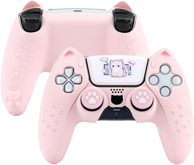 GeekShare PS5コントローラーカバー シリコン製 ソフト スキンケース プレイステーション5 コントローラー対応 PS5コントローラーカバーとシール付け 保護カバー 保護ケース 耐衝撃 簡単装着 滑り止め ほこり防止 PS5保護カバー(猫耳)ピンク b