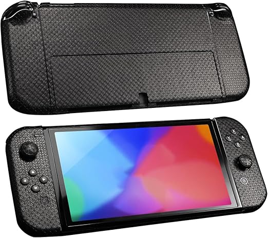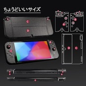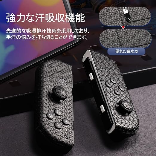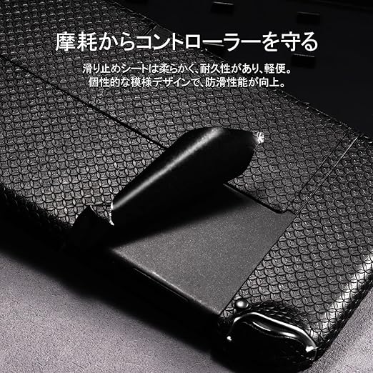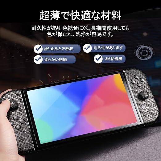 IMMOENUC グリップテープ Nintendo Switch OLEDモデル対応 滑り止め加工 セルフ接着式 汗防止 プレカット済み ソフト質感スキンシールキット(ブラック) a