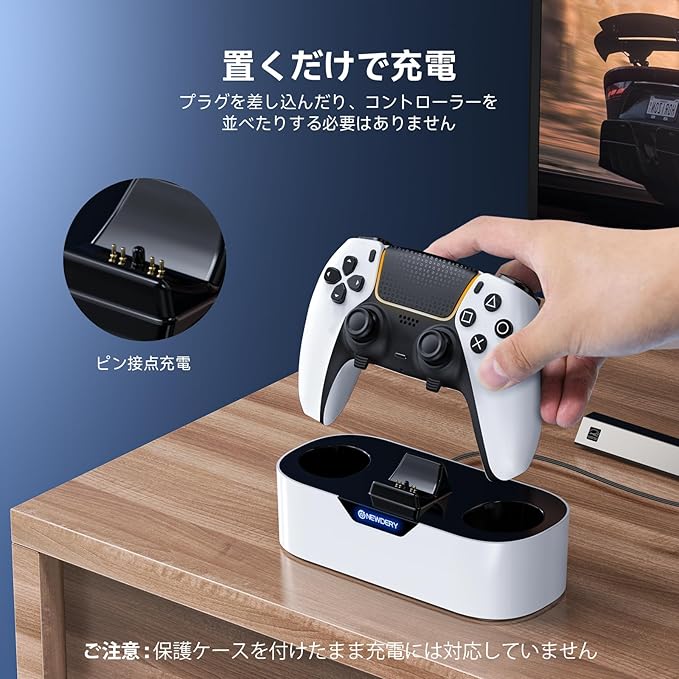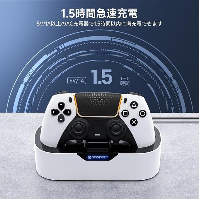 NEWDERY PS5 コントローラー 充電スタンド 収納スタンド 急速充電 置くだけ充電 ps5コントローラー 周辺機器 アクセサリ USB-Cケーブル付属 LED指示ランプ付き 過充電防止 コンパクト 軽量 ホワイト a
