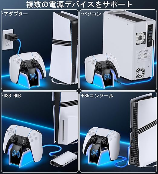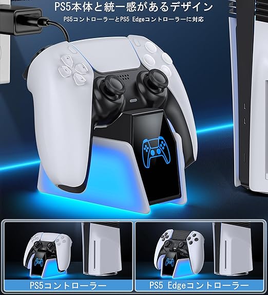 【対応機種】純正PS5/ PS5 Edgeワイヤレスコントローラーに対応できるPS5コントローラー充電スタンドです。※PS5コントローラーは別売りです。