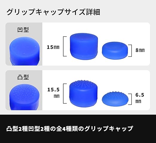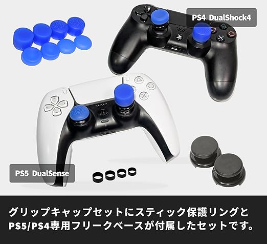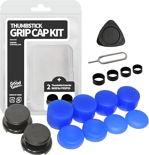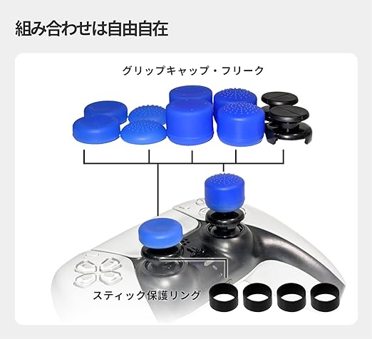 PS5 PS4 コントローラー用 フリーク FREEK ベース 2個 グリップ キャップ 4種 8個(キャップ:凸型 凹型 ハイタイプ ロータイプ/色:ブルー)Grip Cap Kit + Thumbstick Extender for DualSense / Dualshock4 ゲーム スティック エイム 向上 FPS アシスト - The Good Gaming a