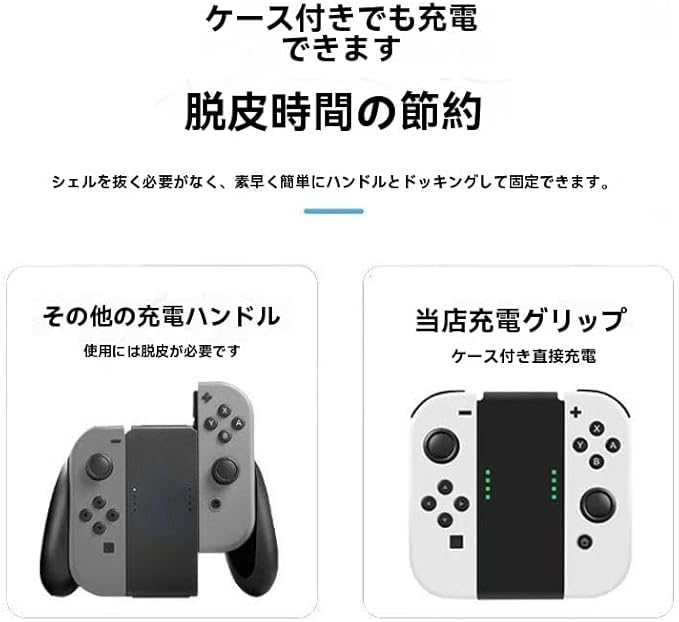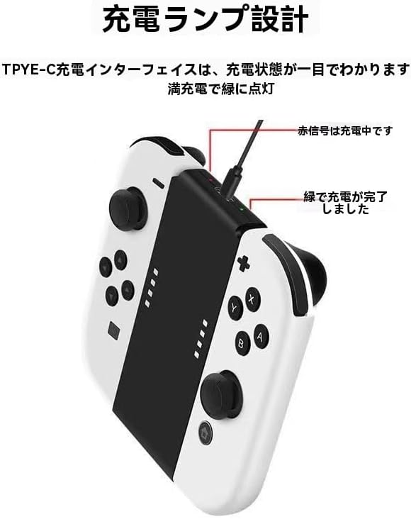 Joy-Con充電グリップ|ジョイコン グリップ&充電器 一体型|Switch/Switch OLED コントローラー対応|LED充電表示・安全保護・持ち運び便利|スイッチ 純正交換用充電器 ケーブル付 (B白) a