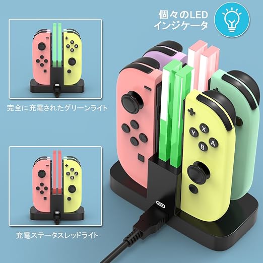 ジョイコン 充電 スタンド Switch用, Diyife ニンテンドースイッチ用 4 in 1, 4台のゲームパッドの同時充電に対応 黒 a