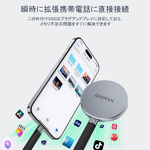 iDsonix 外付けハードドライブ SSD は、iPhone 15 シリーズ、Android モバイルデバイス、ラップトップ、カメラ、Xbox、PS4、PS5、ゲームコンソールなどと幅広く互換性があります。