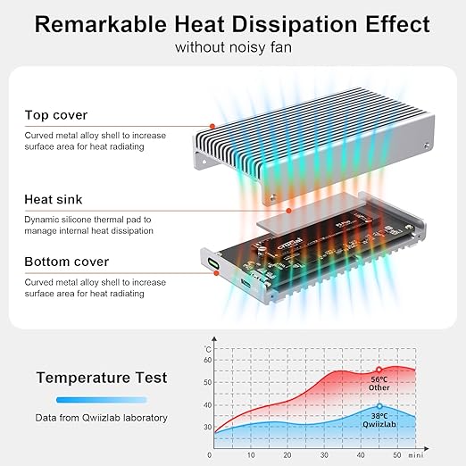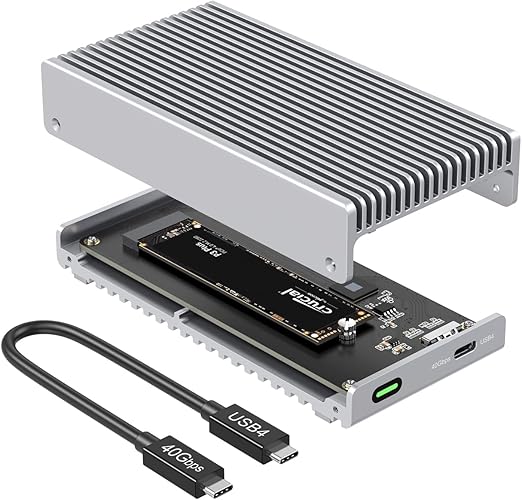 Qwiizlab ファンレス 40Gbps USB4 Thunderbolt 外付けSSDエンクロージャ アルミニウムヒートシンクシャーシ付き M.2 NVMe SSD最大8TB対応 シルバー (SSDは含まれていません) a
