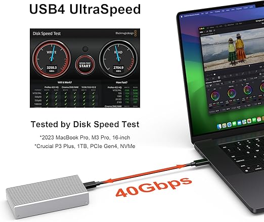 超高速:USB4とThunderbolt 4/5ポートでのデータ転送をサポートし、最大40Gbps(3,840/3,840MB/s)の高速シーケンシャル読み取り速度を実現します。 Thunderbolt 3ポートにも対応していますが、Thunderbolt 2ポートには対応していません。