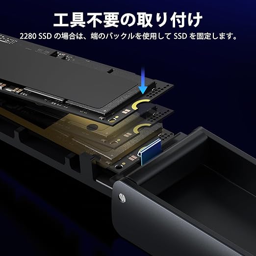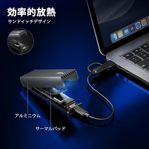 FIDECO M.2 NVMeエンクロージャ 外付SSD ケース USB 3.2 Gen 2 10Gbps NVMe SSDエンクロージャ M&M+Bキー用PCIe NVMeアダプター UASPおよびTRIM対応 サンドイッチスタイルデザイン フルアルミニウム合金ボディ 工具不要の取り付け a