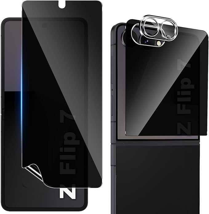 【対応機種】Galaxy Z Flip7用のぞき見防止フィルム+背面フィルム+カメラフィルム。ご購入前に商品画像をご参照の上、機種をご確認ください。