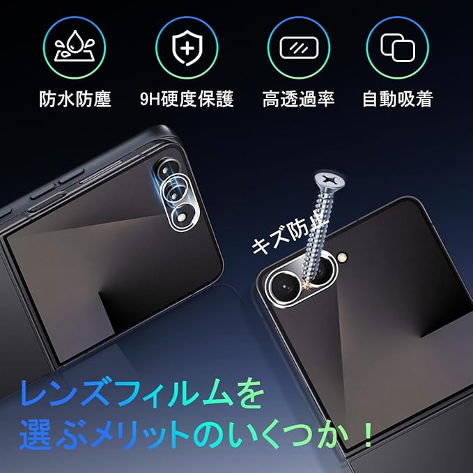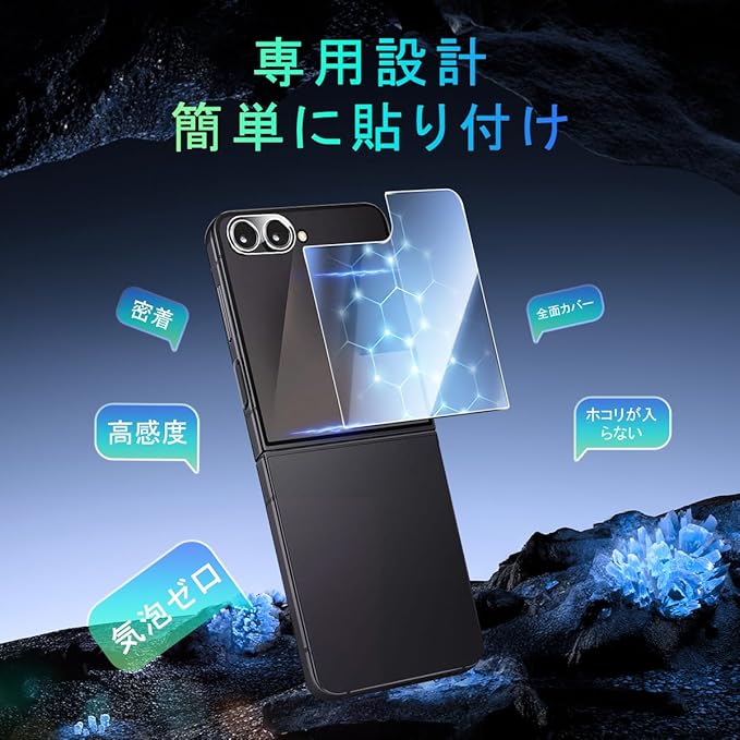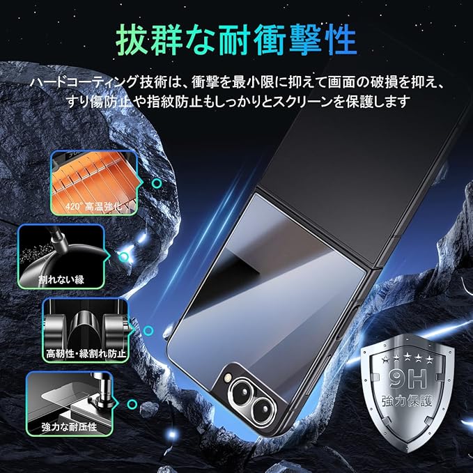 ★【専用設計】対応 Galaxy Z Flip7 専用液晶画面保護ガラスフィルム。本商品は日本素材のAGC 旭硝子 素材を採用して作られております。フィルムのシリコン自己吸着層により、スチールフィルムを携帯電話に合わせて軽く置くだけで、気泡が入らないように簡単に取り付けられます。