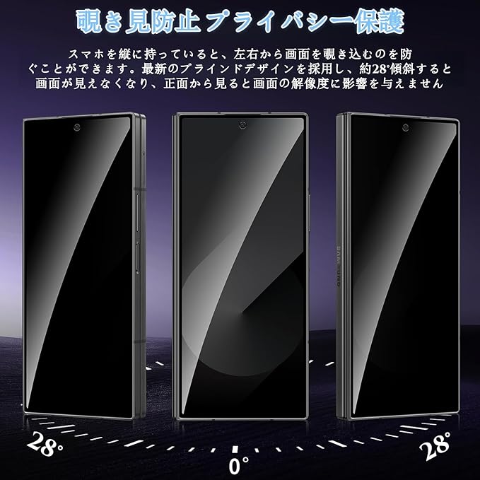 【覗き見防止 プライバシー保護】最新鋭の偏光フィルター採用で操作性をキープしながらのぞき見を防止します。正面から見ると高透過率ではっきり見えますが、周りから見ると真っ黒で何も見られなくなり、満員電車やバスの中でもプライベートが守られて、ご安心ください!