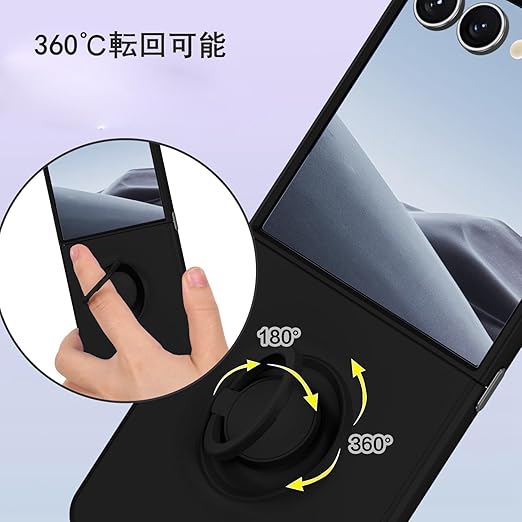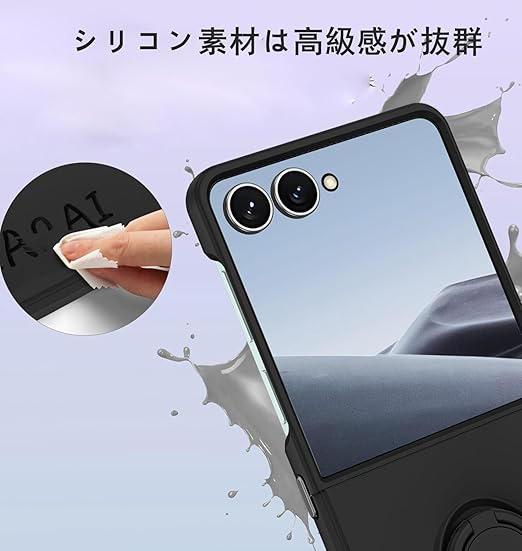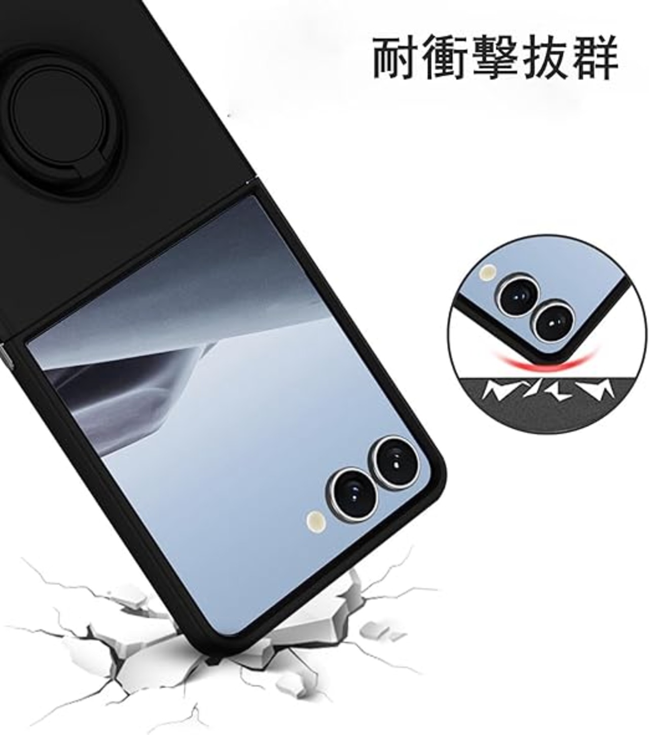 galaxy z flip7 ケース シリコン 四色 リング付き 男女兼用 スタンド機能 高級 人気 galaxy z flip7 ケース 純正 (ブラック) a