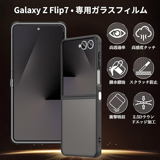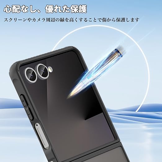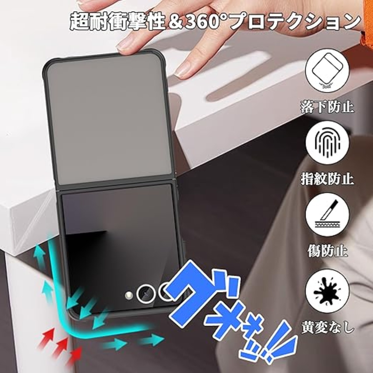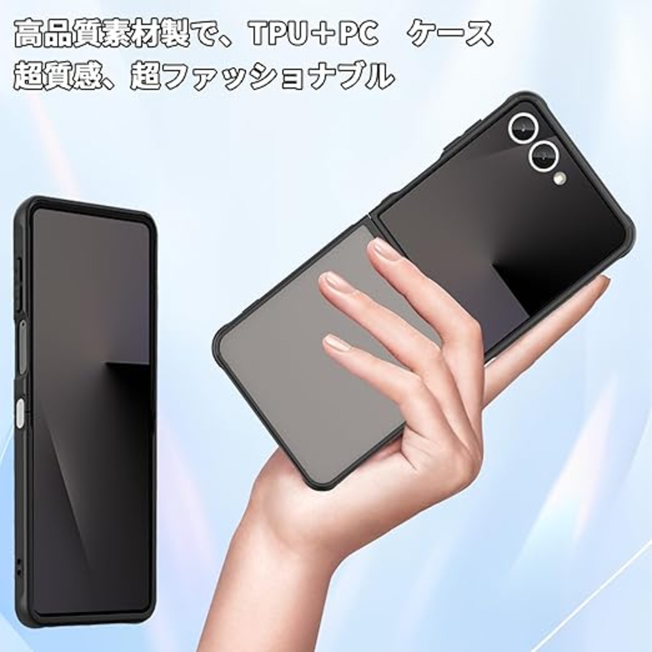 For Galaxy Z Flip7 ケース Mosasa カバー マット感 半透明 TPU+PC レンズ保護 薄型 指紋防止 落下防止 安心保護 軽量 全面保護カバー (ブラック) a