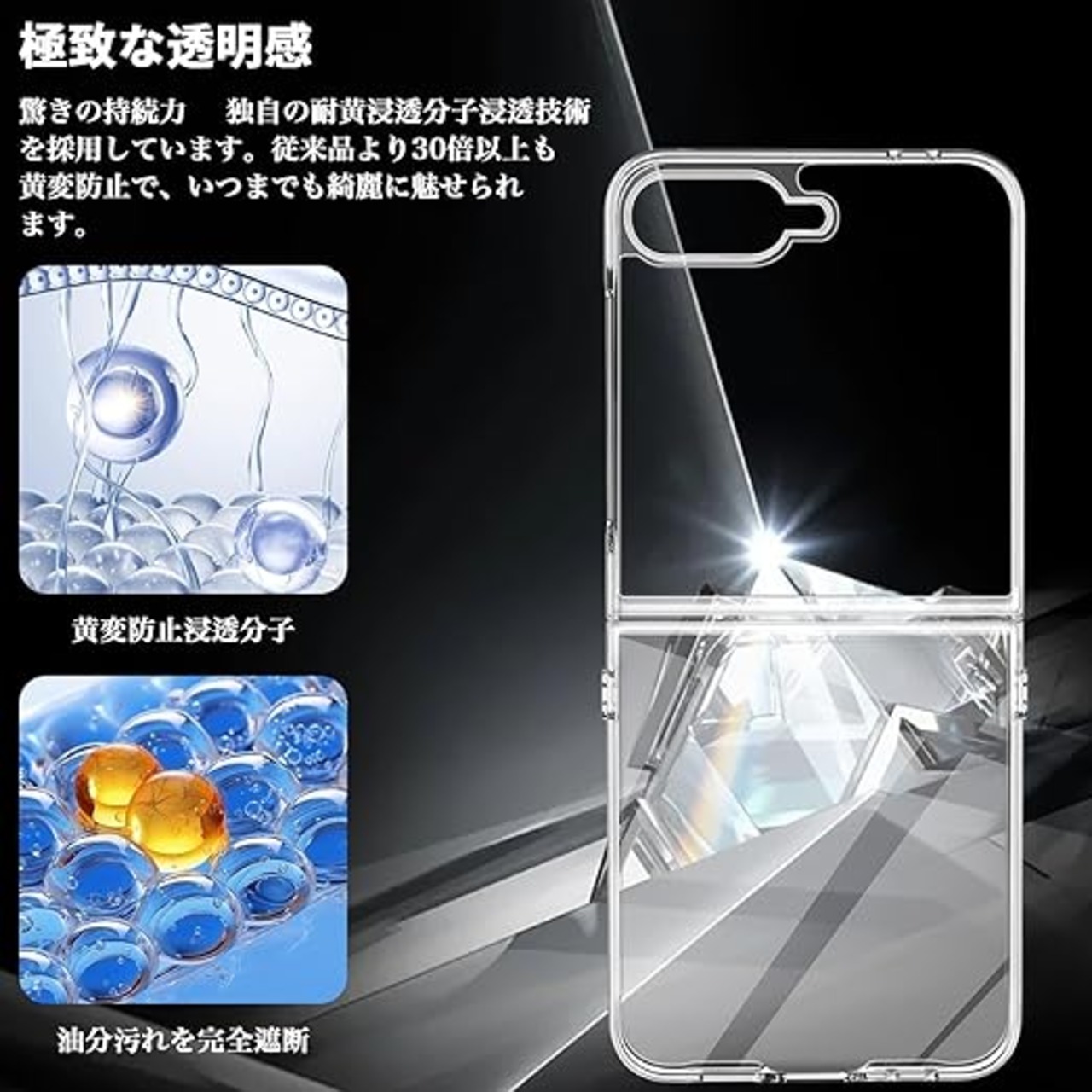 【高透明度】ミニマリストのウルトラクリアスタイルで、Galaxy Z Flip 7の美しい色とデザインの美しさを完璧に表現できます。携帯電話ケース内部の密度の高いマイクロドットが、電話を煩わしい透かしから守ります。