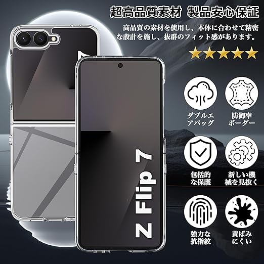 For Galaxy Z Flip7 ケース クリア Galaxy Z Flip 7 対応 カバー PC+TPU素材 耐衝撃 衝撃吸収 全面保護 薄型 軽量 Greerass 保護ケース 滑り止め 黄ばみ防止 指紋防止 透明 耐久 インストール簡単 a