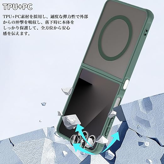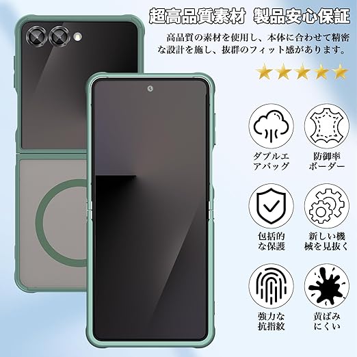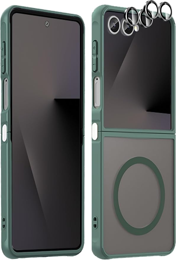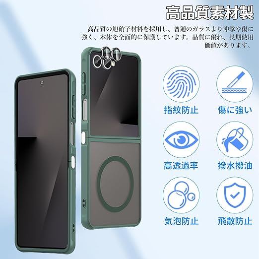 【1個+2枚セット】For Galaxy Z Flip7 ケース(1個?MagSafe対応)+カメラフィルム(2枚) Greerass 保護ケース カメラフィルム付き MagSafe対応 薄型 超軽量 耐衝撃 擦り傷防止 指紋?汚れ防止 手触り良い 着脱簡単 (グリーン) a