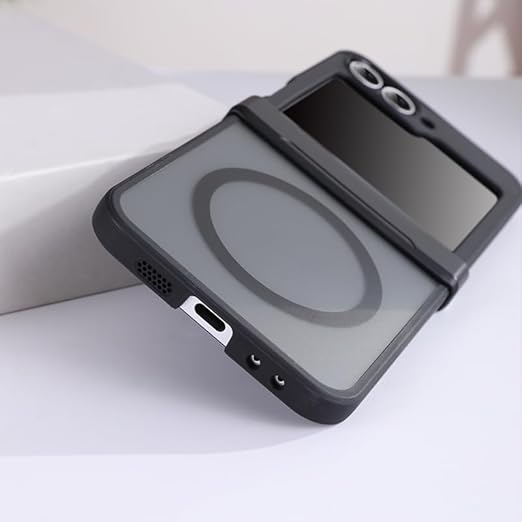 Galaxy Z Flip7 ケース Magsafe対応 ワイヤレス充電 マット 半透明 ヒンジ保護 米軍MIL規格 耐衝撃 マグネット搭載 ストラップホール付き 指紋防止 レンズ保護 ギャラクシー Z フリップ7 スマホケース カバー (Galaxy Z Flip7-ブラック) a