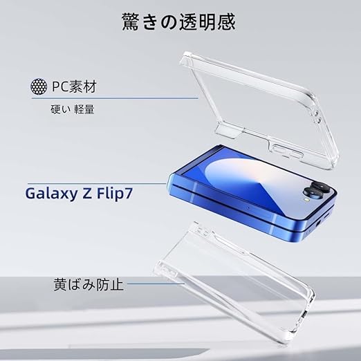 Cninyck Galaxy Z Flip7 ケース クリア 黄ばみ防止 耐衝撃 硬い PC 軽量 薄型 ギャラクシー Z Flip7 カバー ワイヤレス充電対応 Galaxyzflip7 ケース a