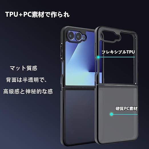 【半透明のつや消しテクスチャー】】Galaxy Z Flip7カバー 高度な抗酸化技術により、黄ばみ防止効果は通常の20倍です。長期間使用しても、見た時と変わらない美しさを保ちます。背面のマット仕上げと革新的な防汚技術により、指紋