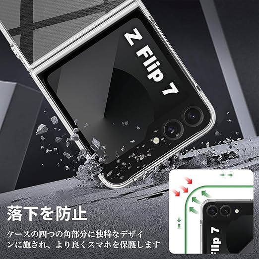 【対応機種】 Samsung Galaxy Z Flip 7 専用の透明ケース。