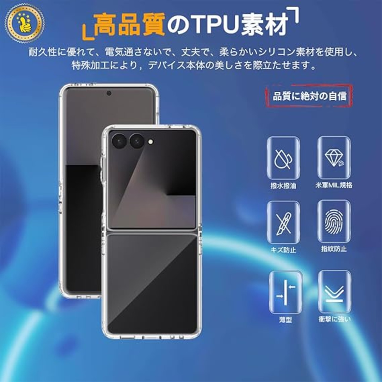 用 Galaxy Z Flip7 SC-55F ケース 透明ソフトPC 米軍MIL規格 すり傷防止 用 ギャラクシー z flip 7 カバー 全面保護 耐衝撃 落下防止 傷つけ防止 四隅滑り止 レンズ保 用 Z Flip7 SCG35 ケース 手帳型 散熱加工 ワイヤレス充電対応 用 ギャラクシー z flip7 保護ケース スマホケース PC背面 薄型 軽量 指紋防止 黄変防止(クリア) a