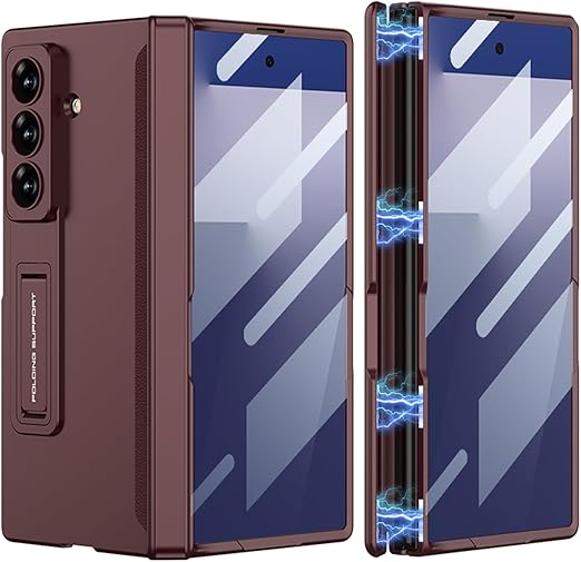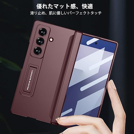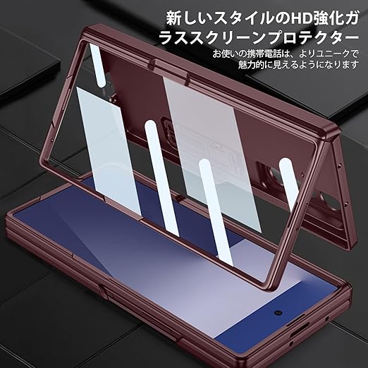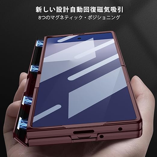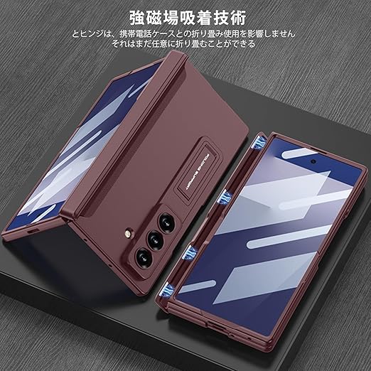 FODDOM Galaxy Z Fold7 ケース ギャラクシーゼットフォールド7ケース ガラスフィルム付き スタンド機能 磁気ヒンジ 耐衝撃 ワイヤレス充電対応 純正 傷防止 レンズ保護 落下防止 (ワインレッド) a