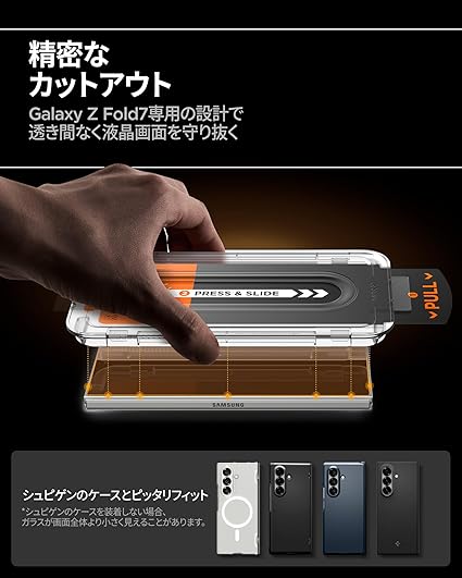Spigen Galaxy Z Fold7 ガラスフィルム EZ Fit Pro 貼り付けキット付き 9H硬度強化ガラス ナノコーティング 飛散防止 2枚入 AGL09576 a