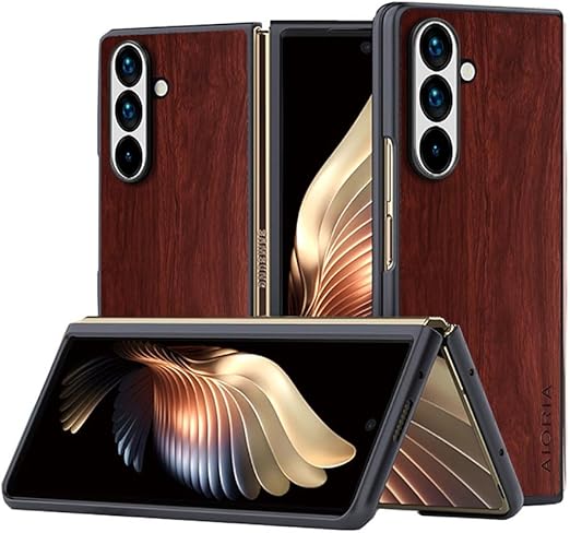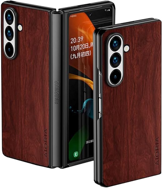 Aioria スマホケース Samsung Galaxy Z Fold 7 Fold7 互換性ありウッドパターン スタイリッシュで丈夫な携帯電話ケース ふれる 木目柄 保護 (Brown, Z Fold 7) a