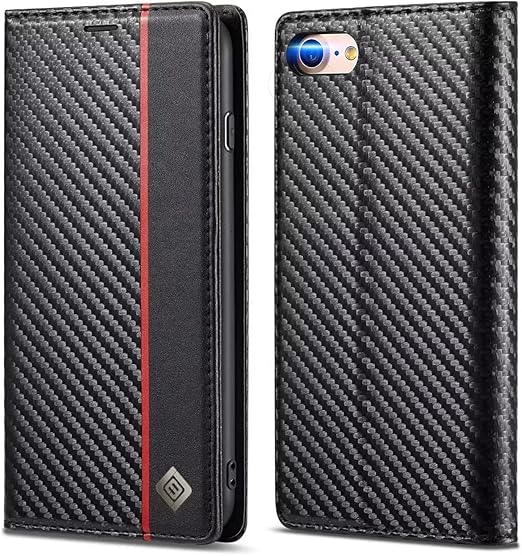 for iPhone SE3 ケース 手帳型 for iPhone SE2 ケース 手帳型 for iPhone SE 2020 / 2022 通用 for アイフォン8 手帳 ケース for iPhone7 ケース 耐衝撃 炭素繊維テクスチャ マグネット開閉式 便利 薄型 カード収納 スタンド機能 ビジネス 上質 高級な炭素繊維風 縦のライン02