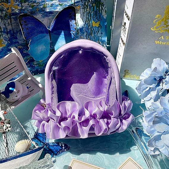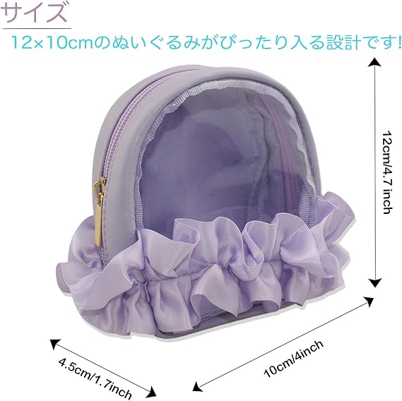 YOKUMA ぬいぐるみ 収納 ぬいぐるみポーチ ぬいポーチ 推し活 ポーチ 推し活バッグ 推し活グッズ 痛バ ミニ 人形入れ 痛バッグ 小さめ クリアポーチ 透明ポーチ クリアバッグ 持ち運び (パープル) a