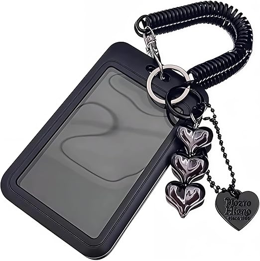 パスケース 可愛い 高校生 女子 定期入れ リール付き ハート チェキホルダー かわいい トレカケース 推し活 韓国 (ブラック) a