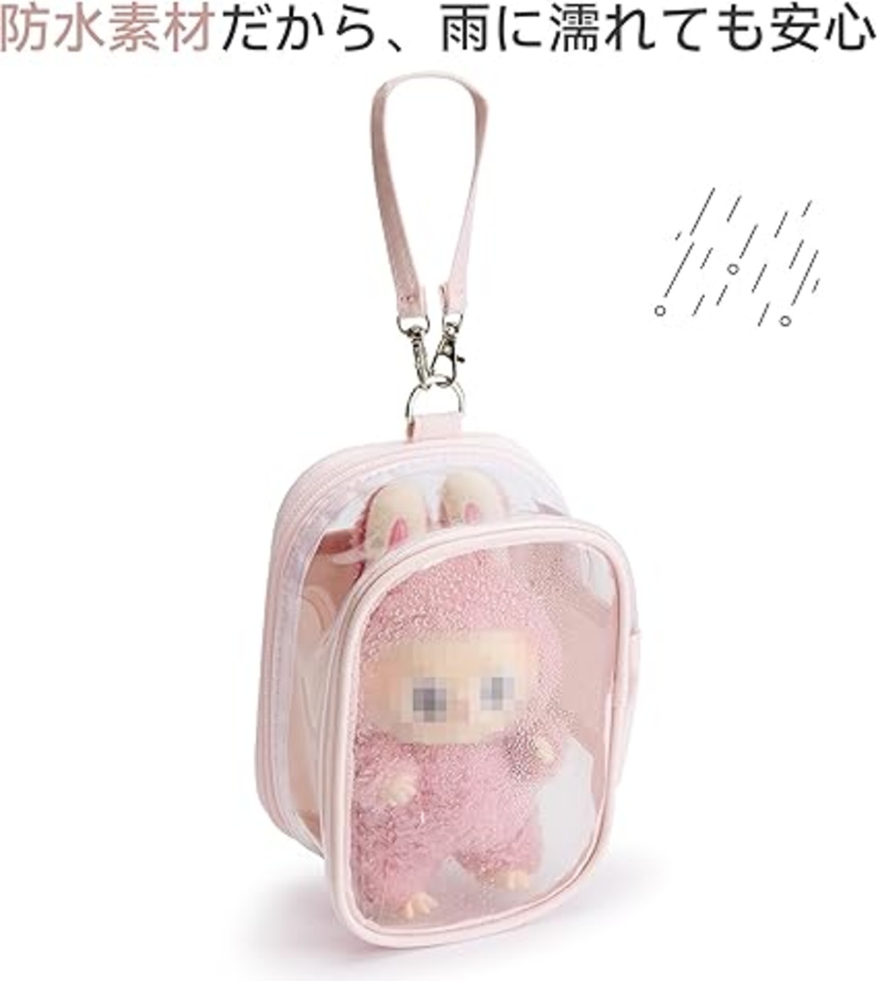 【防水素材】雨の日も安心。ぬいぐるみ収納に最適なPVC素材。痛バッグの内ポケットとしても、外付けぬいポーチとしても、推しグッズをしっかりガード!