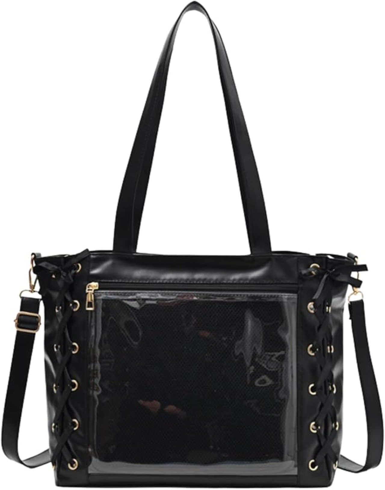 [ハルジオ] 痛バッグ トート レースアップ レザー調 痛バ ショルダー 推し活バッグ トートバッグ ショルダーバッグ ハンドバッグ 2WAY 痛バック 可愛い 高級 いたばっく いたば 推し活 グッズ ぬいぐるみ 鞄 リボン 黒 白 ピンク 水色 b