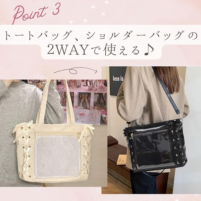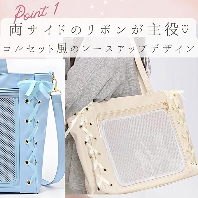 [ハルジオ] 痛バッグ トート レースアップ レザー調 痛バ ショルダー 推し活バッグ トートバッグ ショルダーバッグ ハンドバッグ 2WAY 痛バック 可愛い 高級 いたばっく いたば 推し活 グッズ ぬいぐるみ 鞄 リボン 黒 白 ピンク 水色