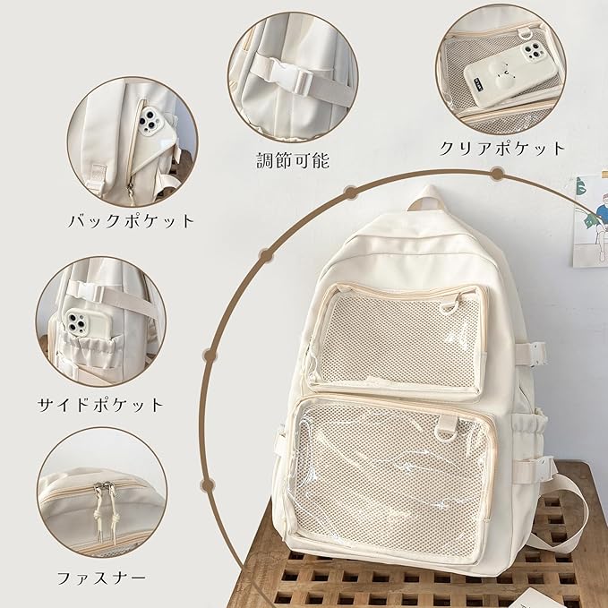 [Manatsulife] 痛バッグ 痛バ 痛リュック リュック バックパック レディース 推し活バッグ 推し活リュック デコバッグ クリアバッグ JK オタ活 推し活グッズ 軽量 大容量 TB03 b