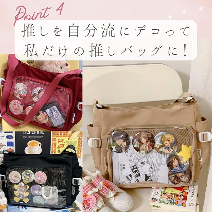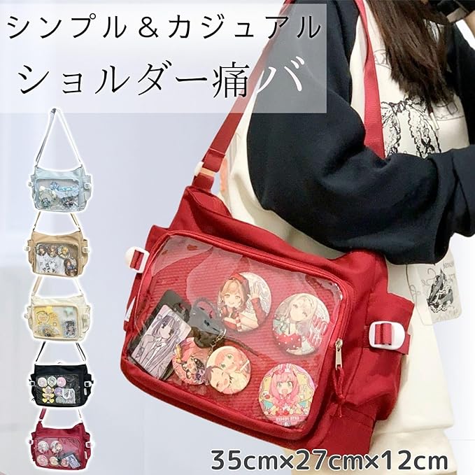 [ハルジオ] 痛バッグ ショルダー 痛バ A4 痛バック ショルダーバッグ 推し活バッグ 透明 バック 可愛い お洒落 いたばっく いたば 黒 白 赤 水色 茶色 ブラック ホワイト レッド ブルー ベージュ 推し活 ぬい 鞄 かばん 人気 シート 付属 c